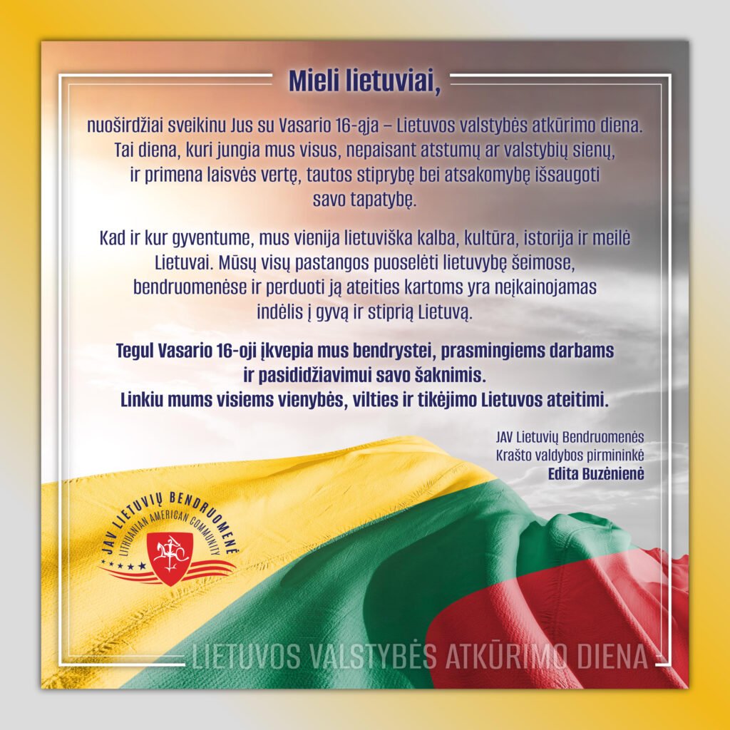 JAV Lietuvių Bendruomenės Krašto valdybos pirmininkės Editos Buzėnienės
