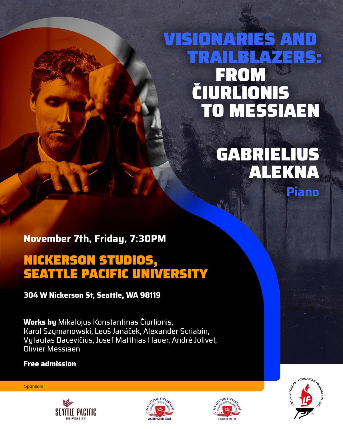 November 7, 2025 @ 7:30 pm Visionaries and Trailblazers. Gabrielius Alekna, pianoIn 2025, marking the 150th anniversary of Mikalojus Konstantinas Čiurlionis and the 120th anniversary of Vytautas Bacevičius, pianist Gabrielius Alekna is bringing together the works of these two giants of Lithuanian music in a program that combines their characteristic and notable works with stylistically […]